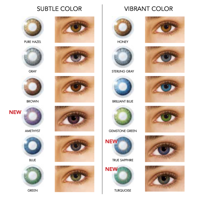 - Available colors: Pure Hazel, Brown, Honey, Blue, Brilliant Blue, True Sapphire, Green, Gemstone Green, Gray, Sterling Gray, Amethyst